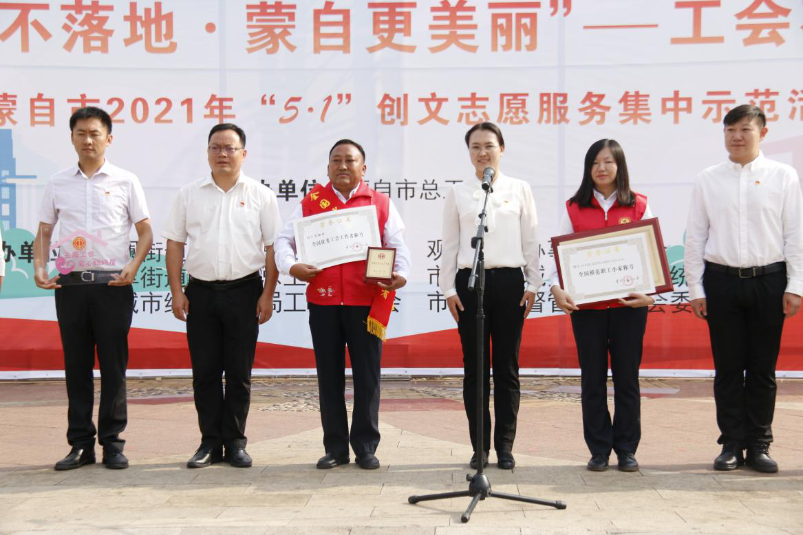 4月30日,蒙自市總工會在南湖廣場開展“煙頭不落地·蒙自更美麗”志愿服務集中示范活動暨“全國模范職工小家”、“全國優秀工會工作者”頒獎儀式,...